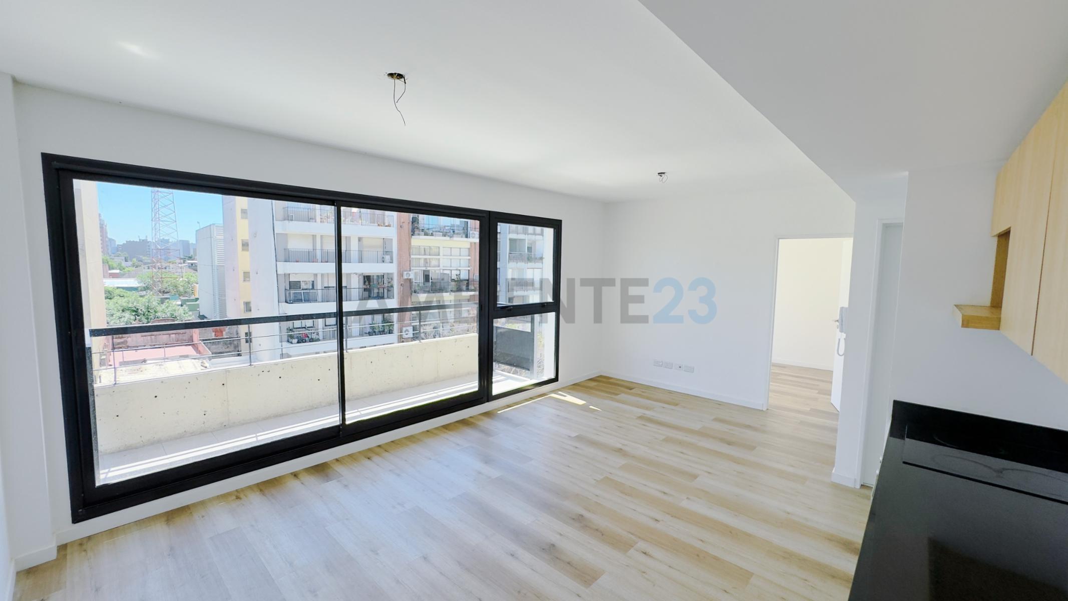 Espectacular departamento de 2 ambientes, ubicado en un 6to piso al contrafrente. La unidad es realmente luminosa. Al ingresar encontramos un amplio living con cocina integrada, la cual cuenta con conexión para lavarropas y amplios ventanales con aberturas de primera calidad. Toilette de recepción con ducha. Amplio balcón con excelente vista. Luego encontramos el dormitorio en suite con baño completo y con vestidor. Pisos flotantes y excelente calidad de revestimientos en toda la unidad. El edificio cuenta con Hidromasaje, Solarium y amplio SUM con balcón aterrazado. El departamento se encuentra ubicacado en el barrio de Chacarita, conn cercanía a Palermo Hollywood.